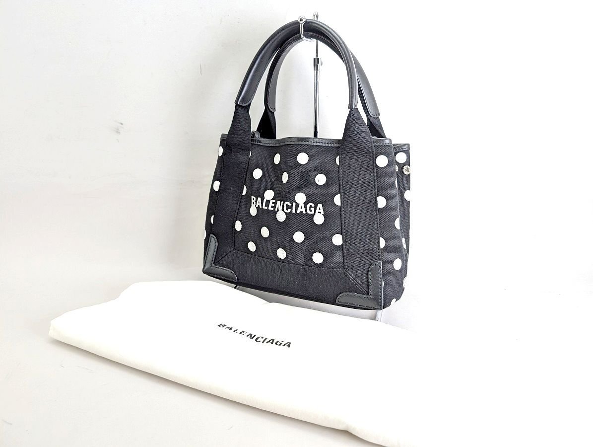 - BALENCIAGA バレンシアガ 390346 ネイビーカバスXS キャンバス×レザー 2WAY ハンドバッグ ショルダー ドット柄[225278