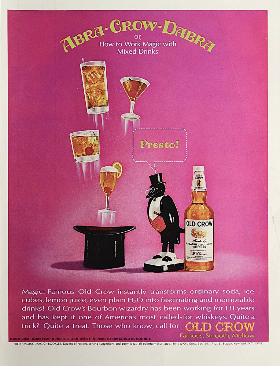 - 稀少!1965年オールドクロウ広告/Old Crow/バーボン ウィスキー/酒/カラス/鳥/マジック/手品/99
