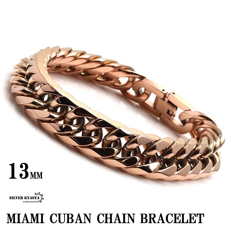 > チェーンブレスレット メンズ ローズゴールド ピンクゴールド 6面カット ダブル喜平チェーンブレスレット 幅13mmブレスレット