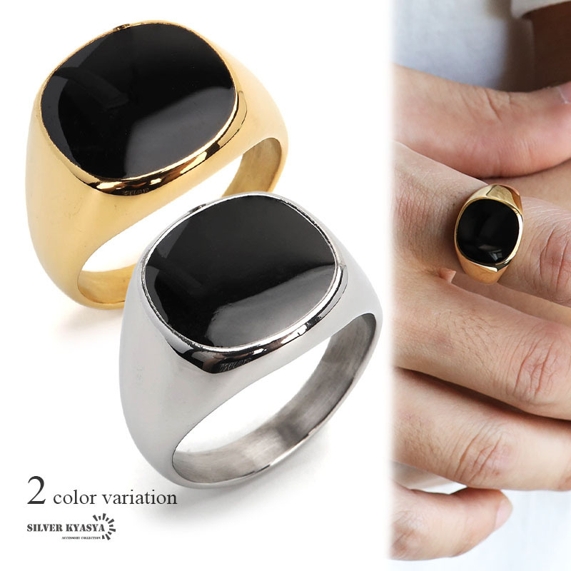 - (シルバー、14号) 印台リング ブラック オニキスリング スタンプリング シグネットリング ゴールド シルバー 2カラー