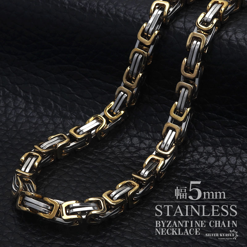 > (50cm) ステンレス ごつめチェーン ネックレス 幅5mmネックレス ビザンチンチェーン スクエア ごつい ゴールド シルバー
