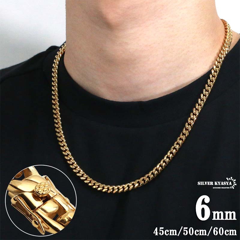 - (50cm) 316L 幅6mm 細め メンズネックレス 18k gp 金 ゴールド 喜平チェーン 喜平ネックレス