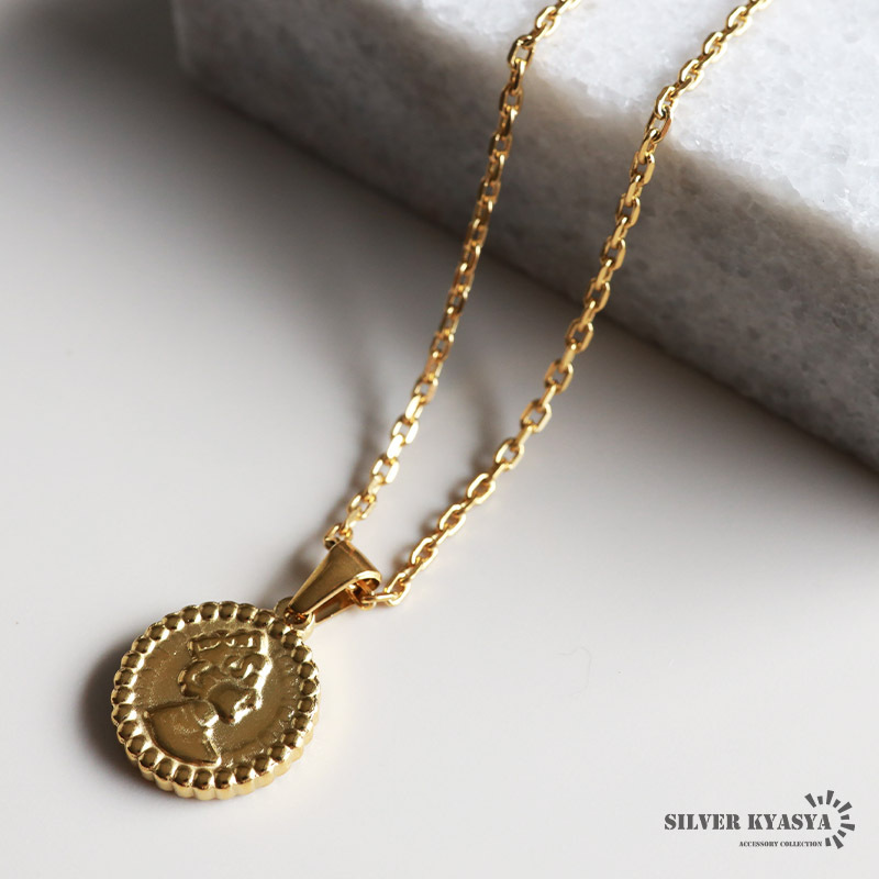 > (50cm) コインネックレス あずきチェーン アンティーク エリザベス女王 ゴールド 18K ステンレス 金属アレルギー対応