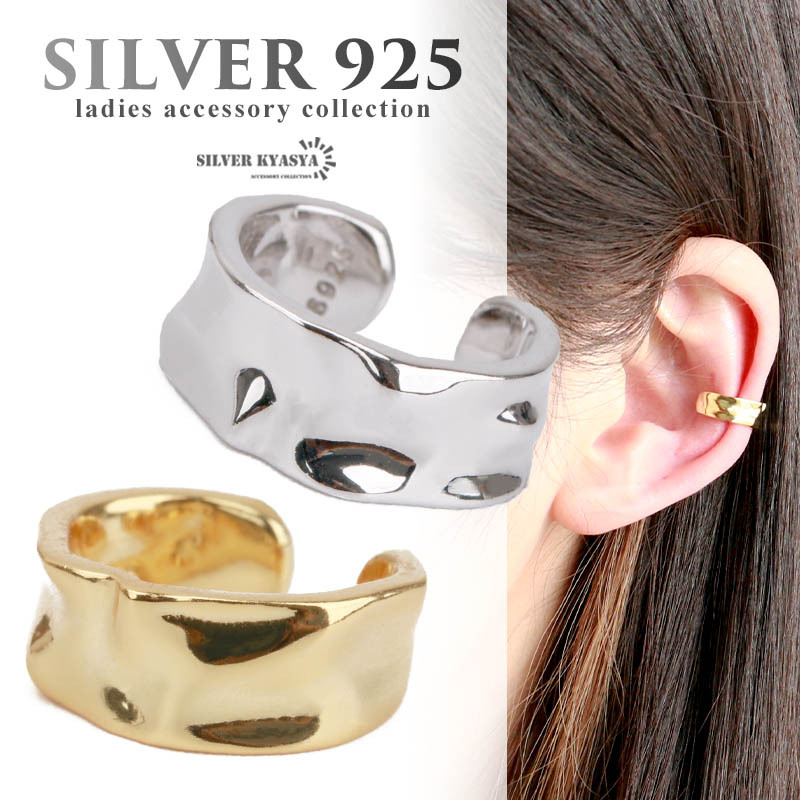 > (ゴールド) 槌目 槌打ち フープ イヤーカフ シルバー925 18k18金 イヤークリップ シルバー ゴールド 片耳用