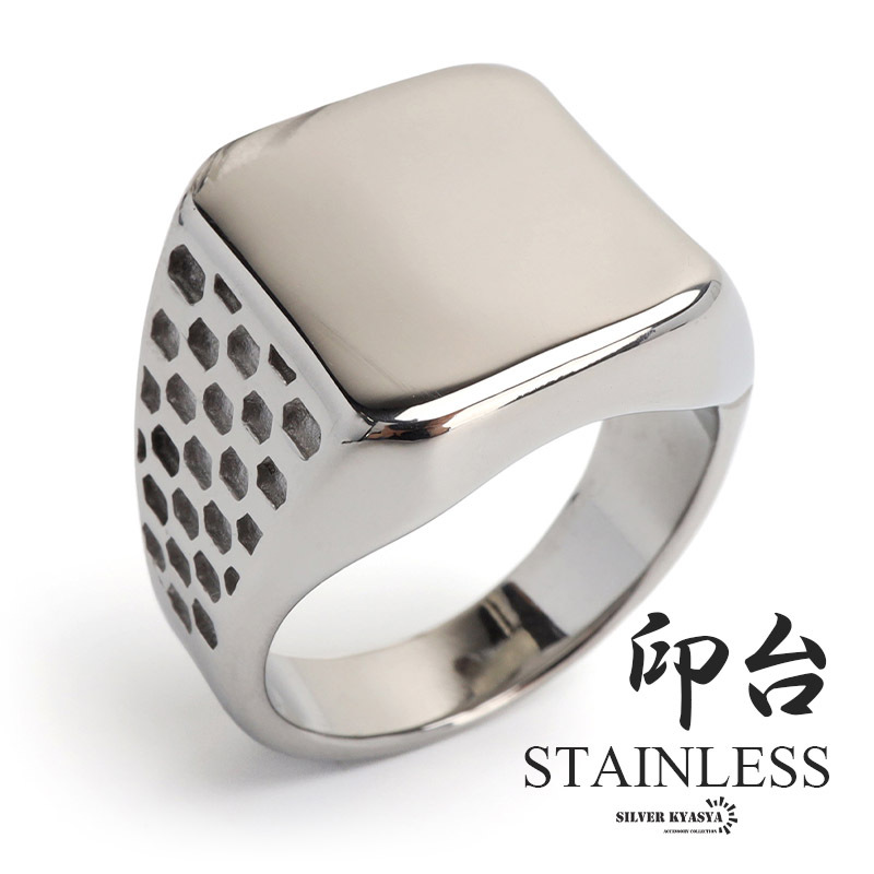 - (29号) ステンレス 印台リング シグネットリング シルバー プレーン 幾何学模様 シンプル 太め メンズ 金属アレルギー対応