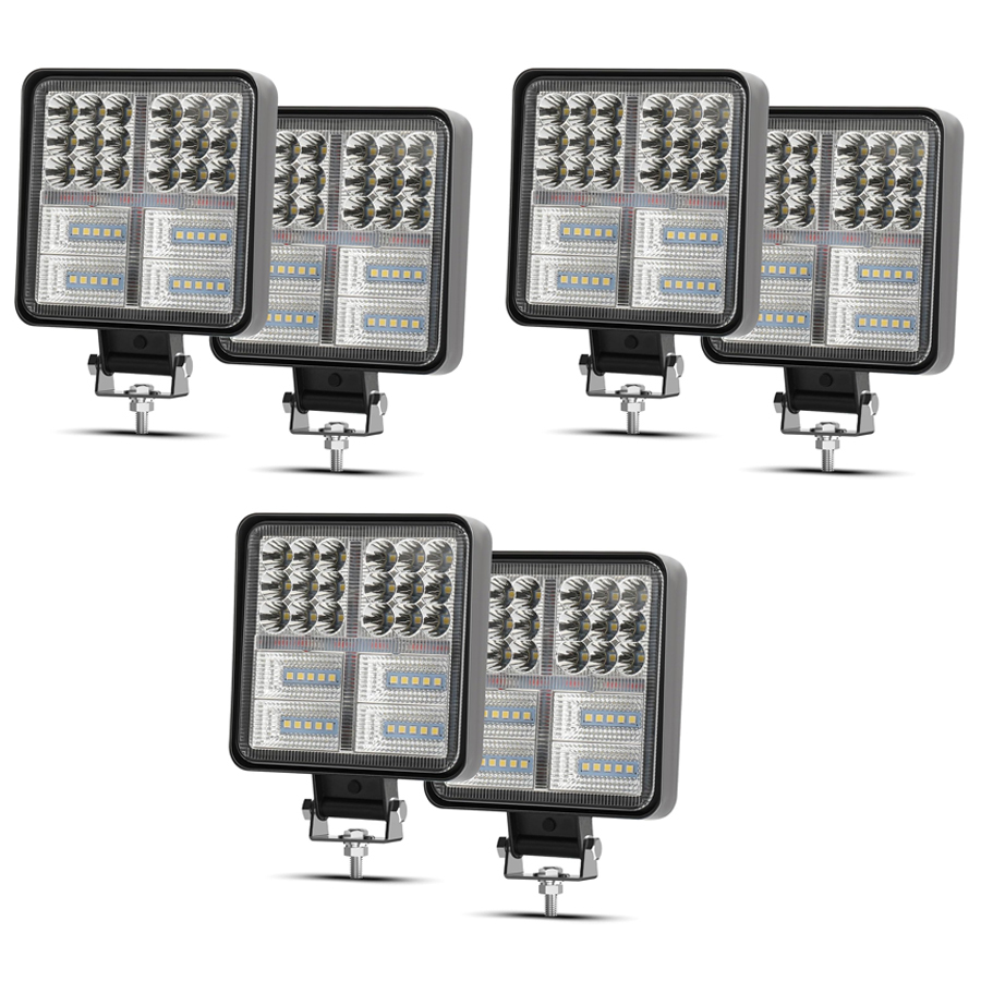 - タイムセール!高輝度 32W LED作業灯 ワークライト 広角 車外灯 農業機械 オフロード車 庭園灯 汎用 防水防塵 耐衝撃 12V-24V対応 6個入り