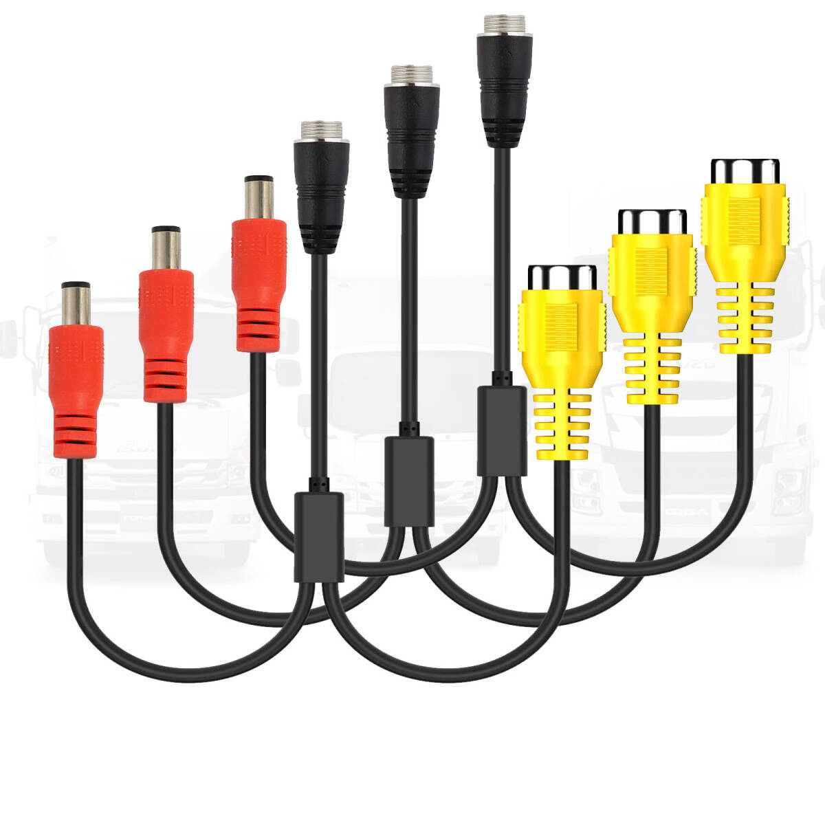 - 4ピン(オス)⇔RCA(メス)/DC(オス)変換ケーブル 映像/電源ケーブル 3本