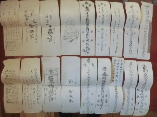 > 広瀬栄一コレクション木版印刷8-28●昭和10年 御札 金乗院18枚と考古学者東大教授齋藤忠から広瀬氏宛手紙付 250207 古文書