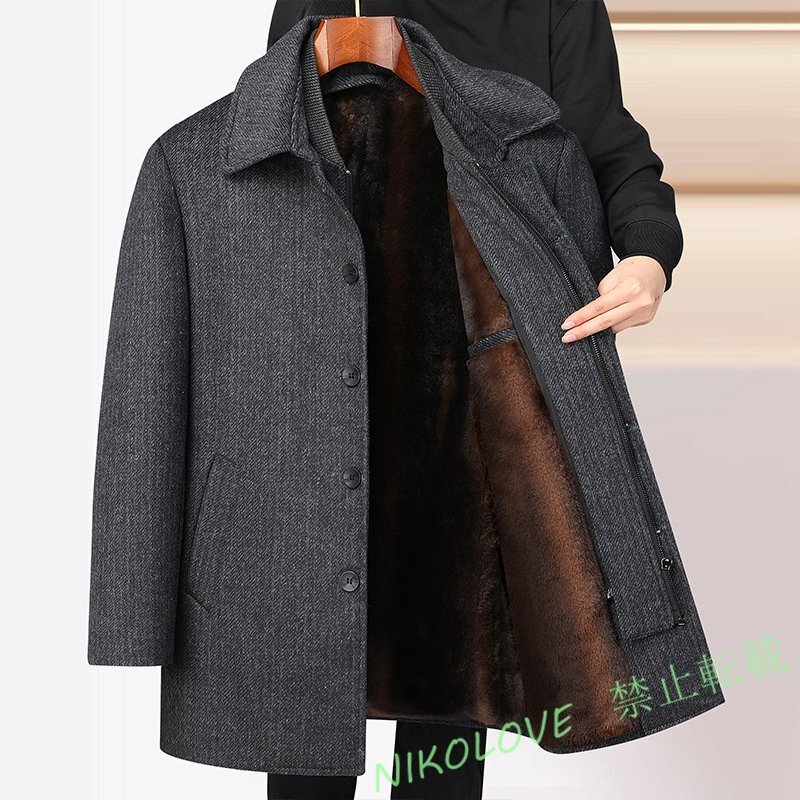 > ☆新品ウールコート メンズ 裏起毛 厚手 裏フリース WOOL セレブ ロングコート ビジネスコート 紳士スーツ グレー② L LK446
