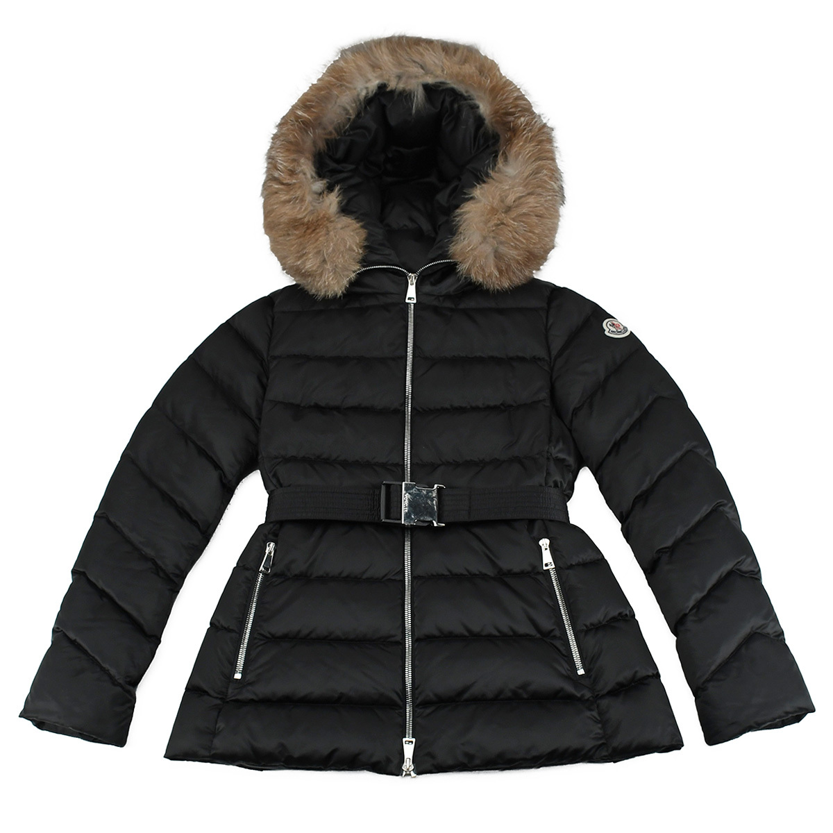 > モンクレール MONCLER ダウンジャケット キュピドン フード ファー付き CUPIDONE ナイロン ブラック 黒 サイズ00 ロゴワッペン 中古