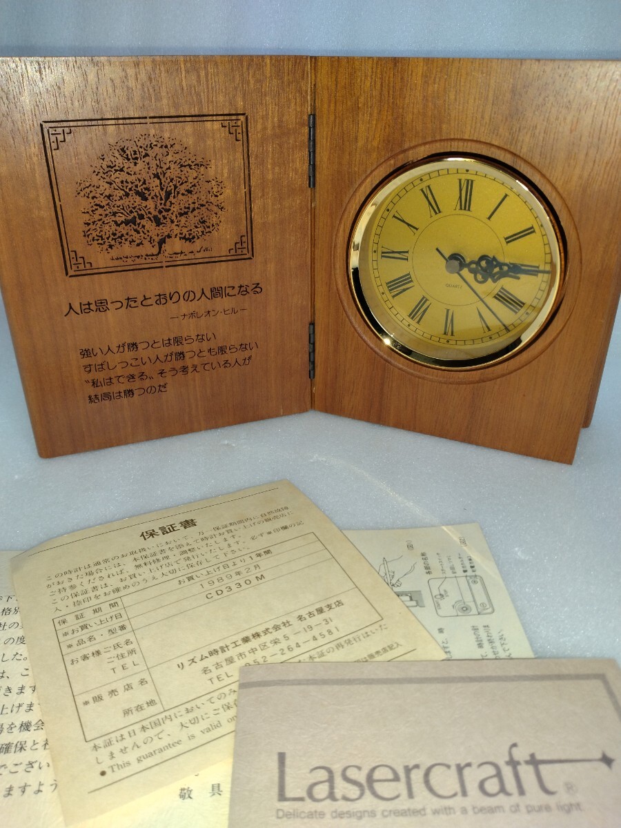 - K845 レーザークラフト 木製本型置き時計 大東建託ノベルティ 1989年製 ビンテージ 未使用長期保管