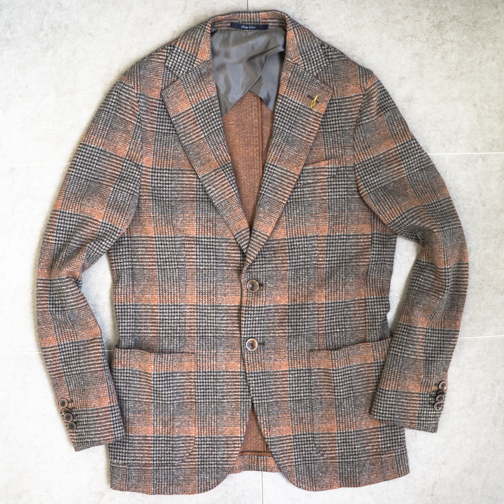 > イタリア老舗★新品 PAOLONI コットン ニット ジャージー ジャケット グレンチェック 50 送料無料 メンズ サルトリア パオローニ チェック