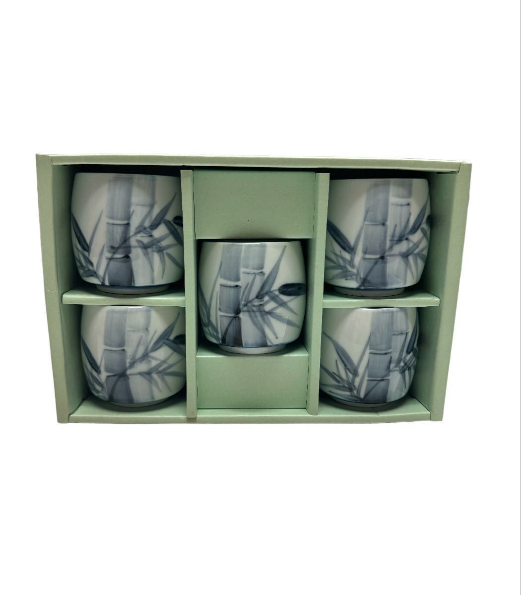 - 湯のみ茶碗 竹柄 湯呑み 5個セット 陶器 和食器 レトロ 来客用 湯呑みセット お茶用品