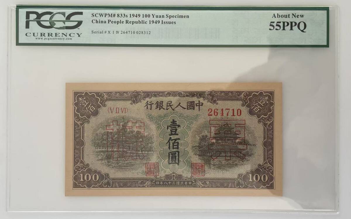 - 中国紙幣 中国初版人民元 100元 見本 1949年