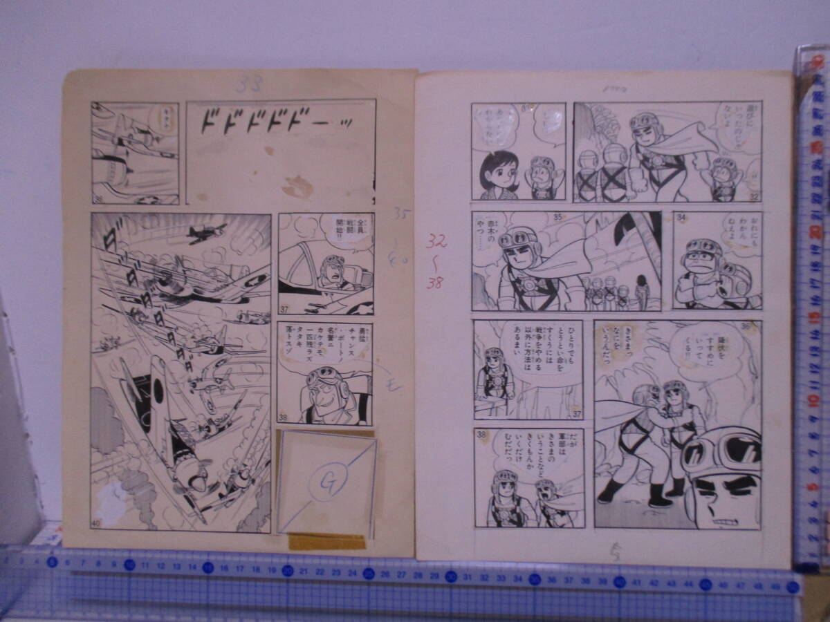 - 真作 貝塚ひろし(2023年没)直筆原稿2枚「ゼロ戦レッド 降伏」原画 冒険王」連載 1961ー1966年 サインなし