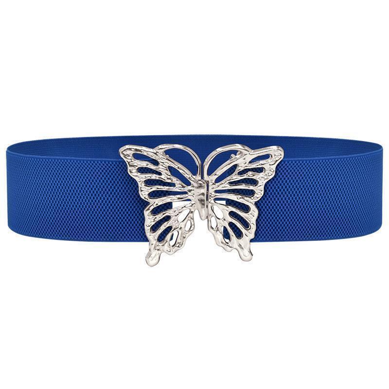 - シルバー蝶々バックル 【ブルー】73cm~106cm幅広ゴムベルト
