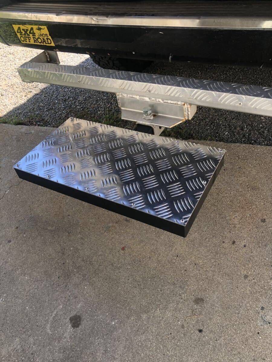 - アルミ縞板ヒッチステップ 50mmと2インチ用 オーダー製作します ソレックス用CURT1.25インチ用製作可能 キャンピングカー