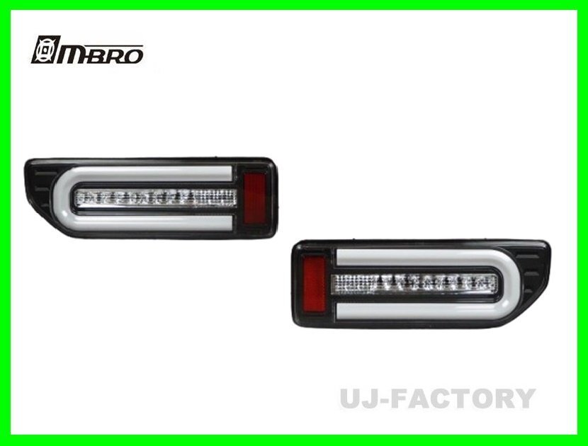 > ★mBRO ジムニーシエラ JB74W/フルLEDテール Gスタイル(クリアレンズ/ブラックリム STJB64JIMY-3LTB-CB-04)★流れるウインカー搭載!