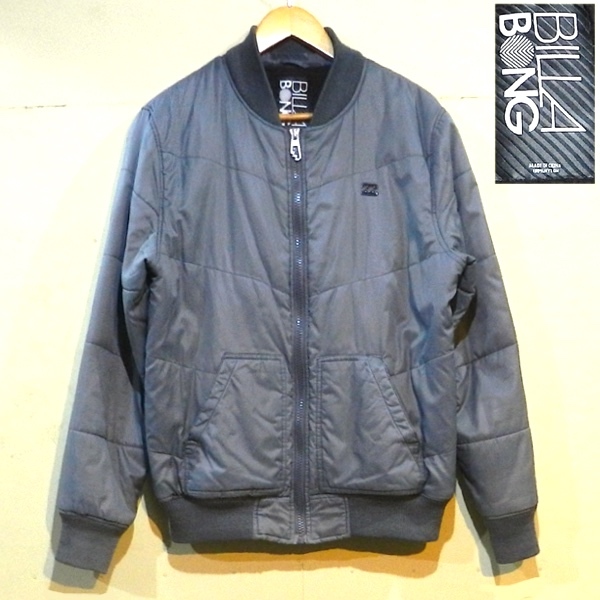 > BILLABONG ビラボン 中綿 ライトダウン フリース ロゴ プレートパッチ リブ ジッパー ジャケット ブルゾン スタジャン グレー M サイズ