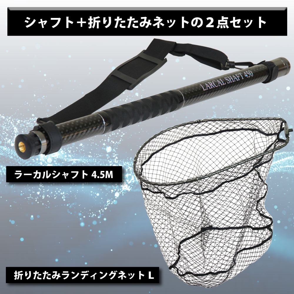 おり釣具 カーボン玉の柄 ラーカルシャフト 4.5M+折りたたみランディングネットL 2点セット ブルー (netset-043-bl)