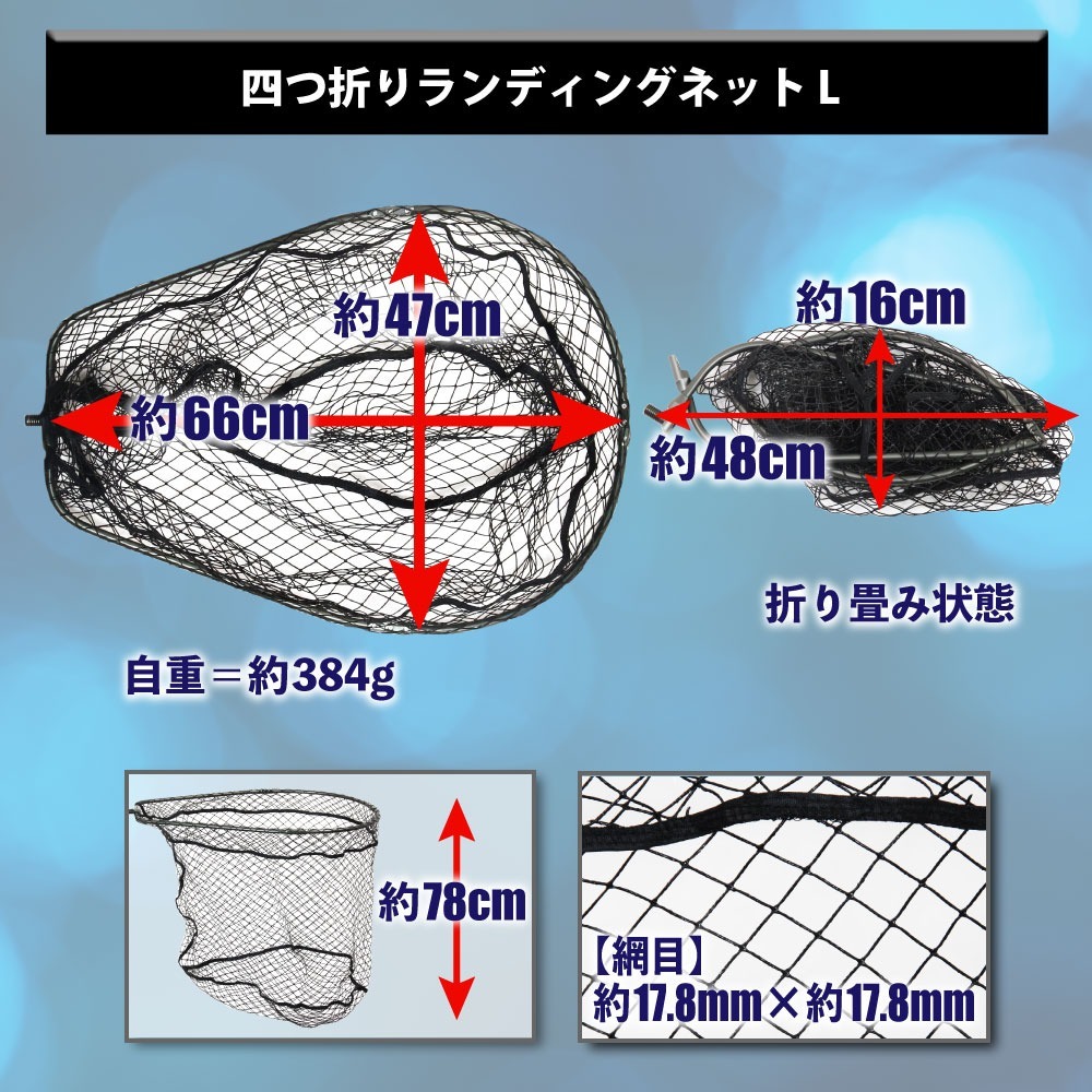 中型魚から大型魚のランディングに最適ですがフレームは四つ折り構造を採用しているのでかさ張らず、持ち運びや保管に便利な点も大きな魅力です。