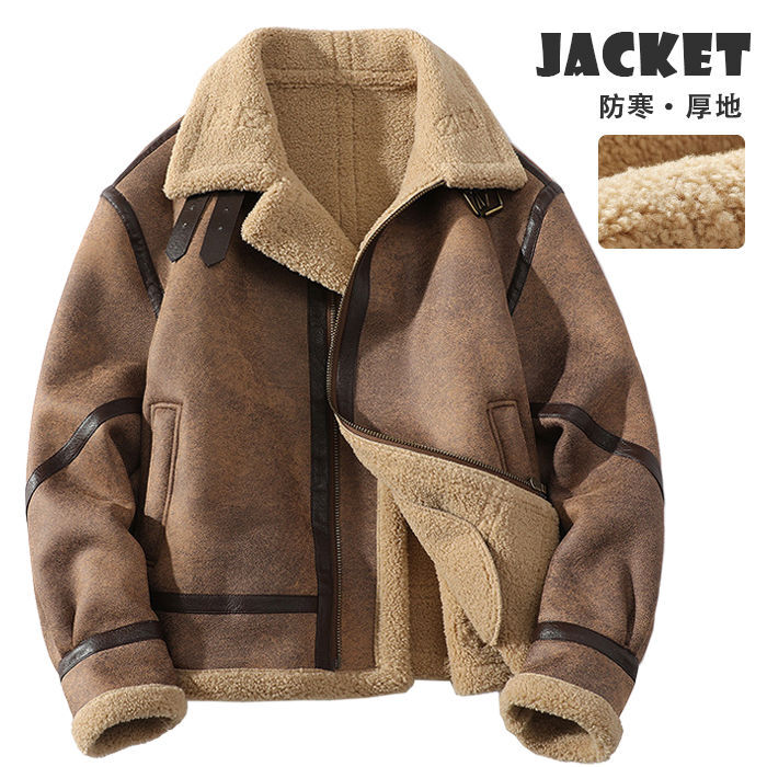 - ムートンジャケット メンズ ジャケット フライトジャケット 機車服 ジップアップ ジャケット 男性 冬アウター Zty-5464-1 キャメル色 M
