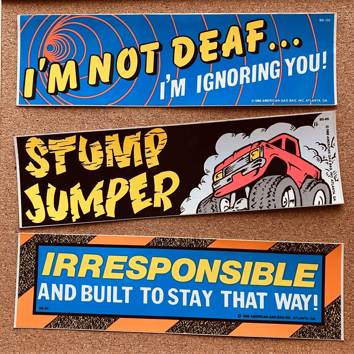 - 1980sバンパーステッカー3枚/USA/アメリカ/vintage/ユーモア/当時物①