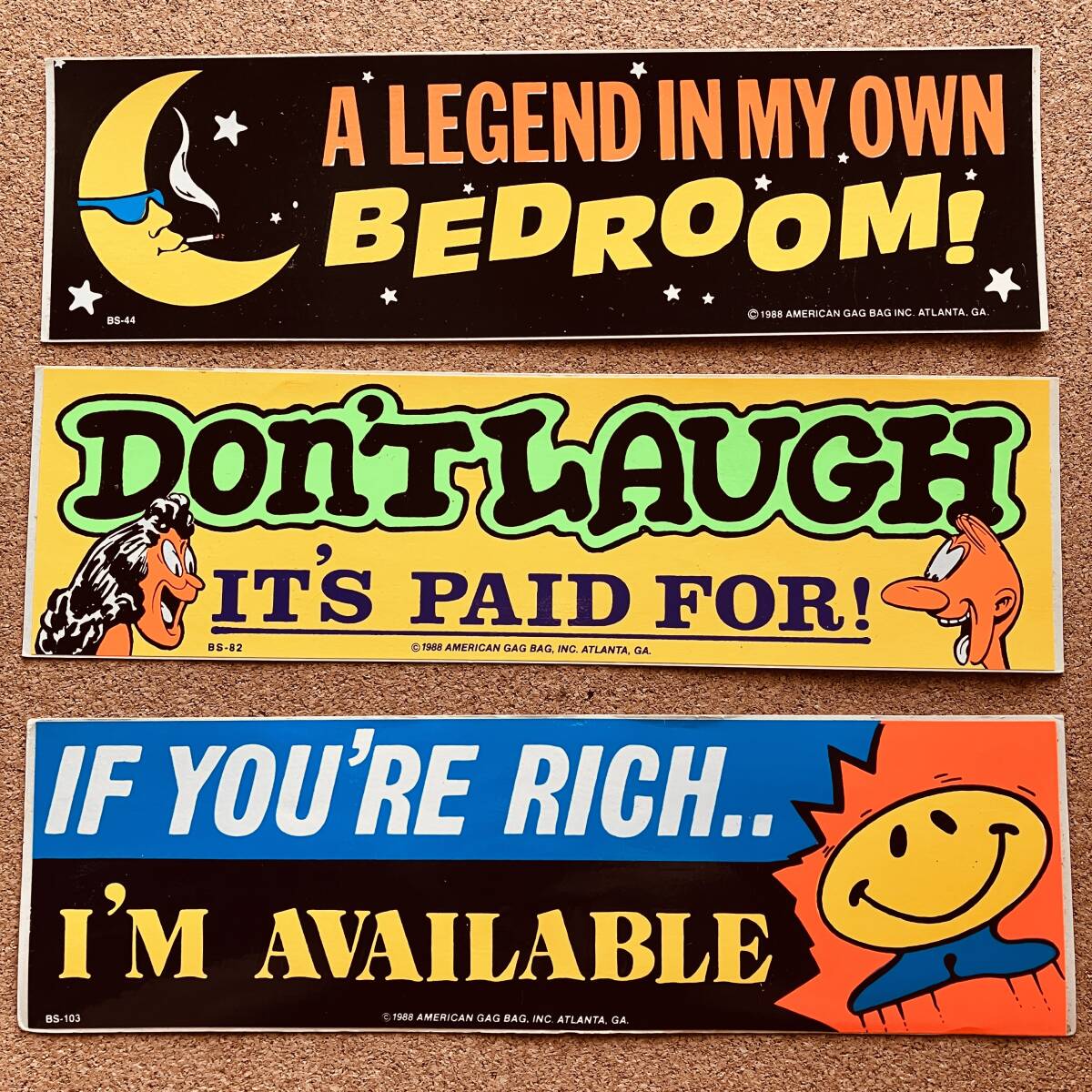 - 1980sバンパーステッカー3枚/USA/アメリカ/vintage/ユーモア/当時物③