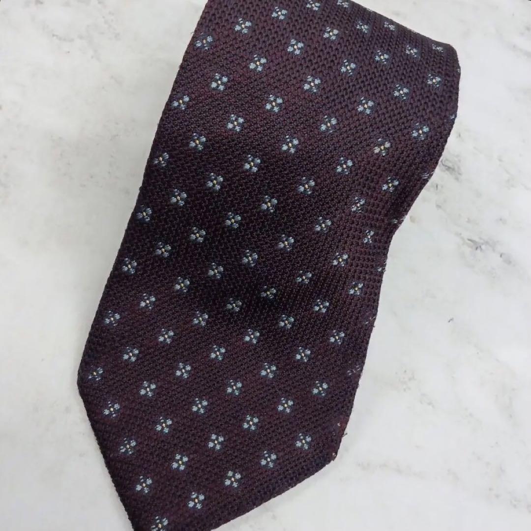 - フェアファクス ネクタイ えんじ色 小花柄 シルク100% 絹【n112】