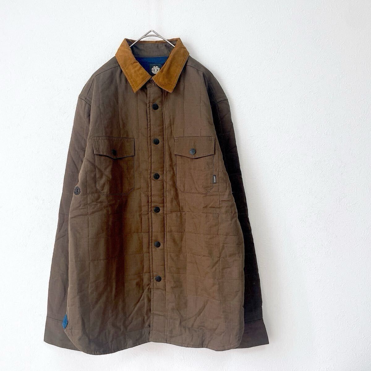 > おしゃれELEMENTエレメント肉厚トップス長袖シャツ カーキ キャメルMサイズ キルティング カバーオール ジャケット デニム コーデュロイ