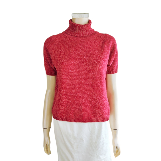 - 美品★ダイナフロー*Dinah Flo*滑らかカシミヤ100%*綺麗ルビーレッド系*ハイネック半袖ニット*セーター*Mサイズ.38.9号