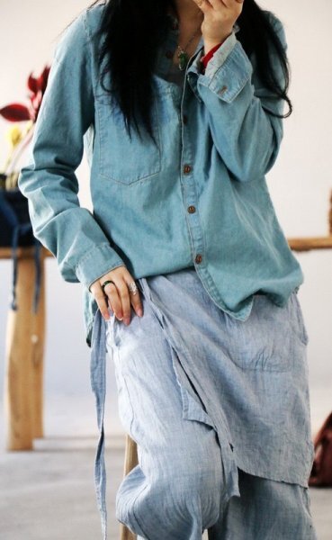 - jm チュニック ワイシャツ 柔らかな素材 シンプル 楽な着心地 軽やか 純色 ダル タフ デニム生地 ジーンズ
