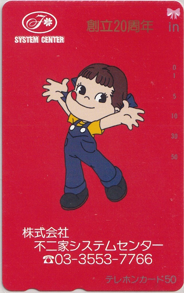 - =不二家ペコちゃん= 「システムセンター 右上金文字有り20th」販促テレカ #72761