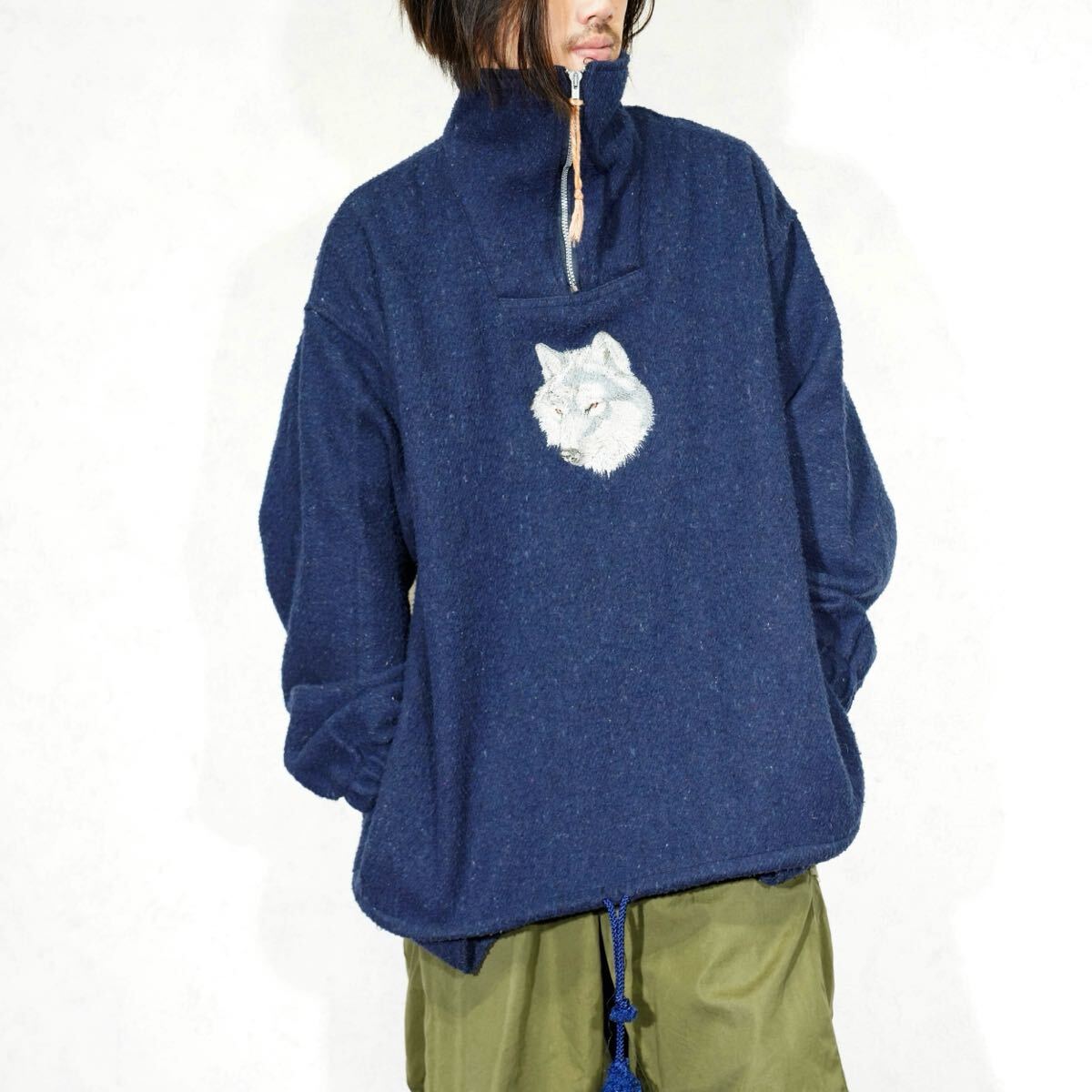 - *SPECIAL ITEM* USA VINTAGE EARTH RAGZ アメリカ古着オオカミ刺繍起毛デザインハーフジップブルゾン