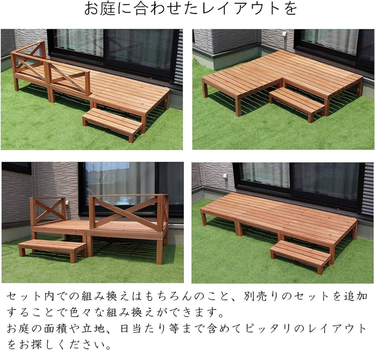 - リビングアウト(Living Out) 天然木ウッドデッキ 0.5坪 6点セット ブラウン デッキ:幅90x奥行90x高さ36cm