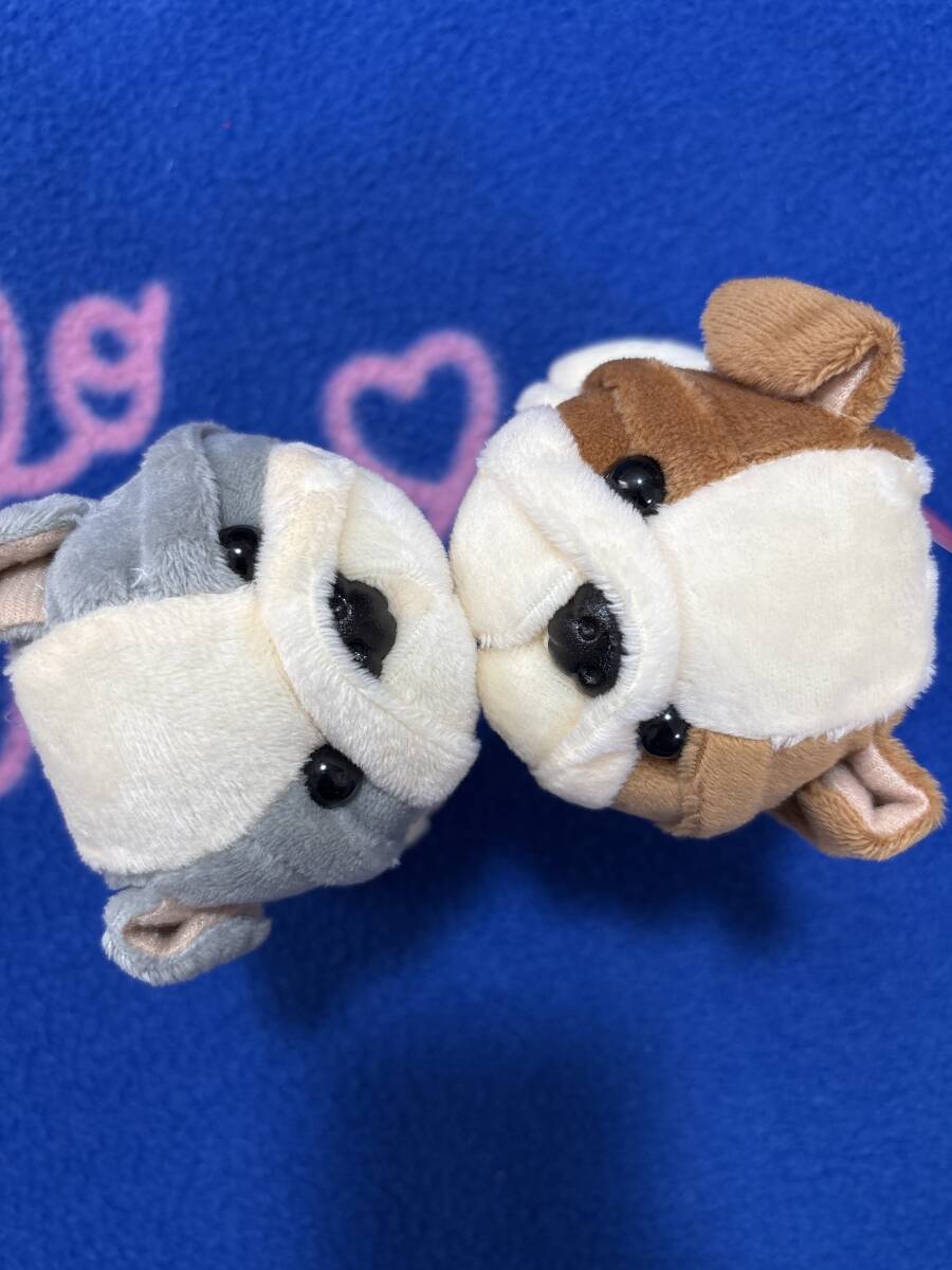> ブルドッグ 犬 動物 マスコット ぬいぐるみ 2種 ボールチェーン 鼻ぺちゃ ブル 新品 未使用 非売品 レア タグ付き 即決時特定記録付き