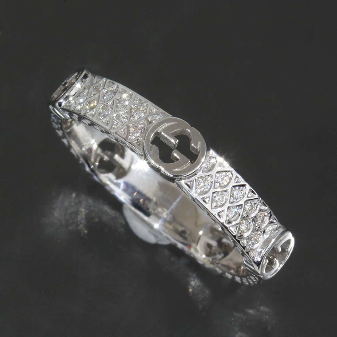 - グッチ GUCCI インターロッキング フルダイヤ リング 19号 5g K18WG 日本限定 メンズ E1611