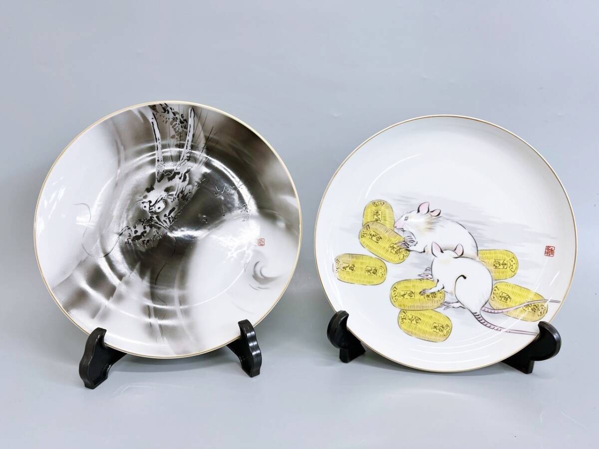 - 宮内庁御用達 深川製磁 有田焼 干支 縁起皿 龍 辰 ねずみ 鼠 飾り皿 2枚セット 和食器