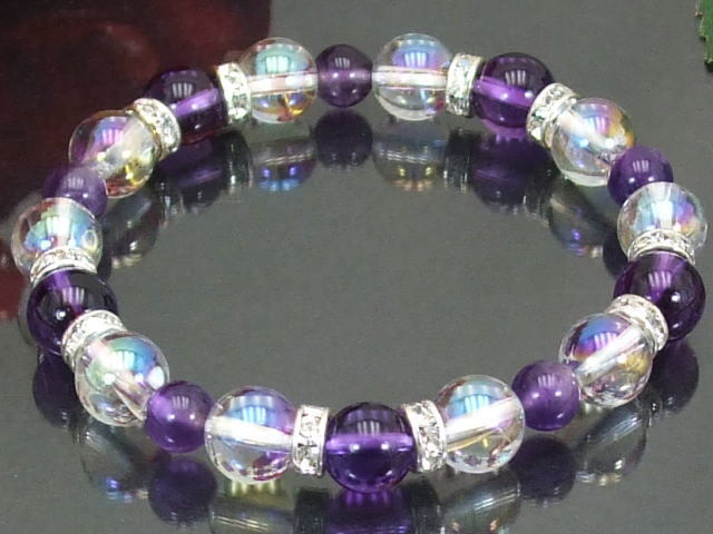 - ★☆★2月誕生石 アメジスト&アクアオーラ水晶 ブレスレット 真実の愛 誕生石を身に付けて幸せに♪ パワーストーン 送料無料(a_r)b