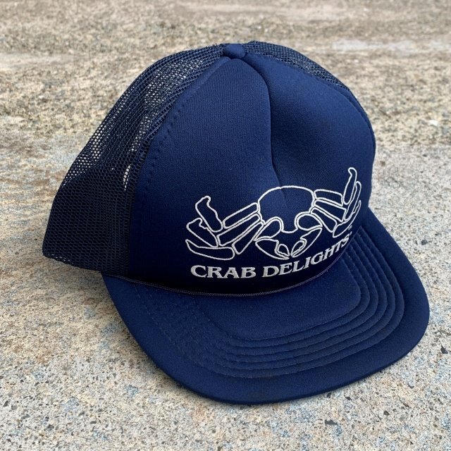 > 【Free】CRAB DELIGHTS メッシュキャップ ネイビー 紺色■ビンテージ オールド レトロ アメリカ古着 帽子 カニ