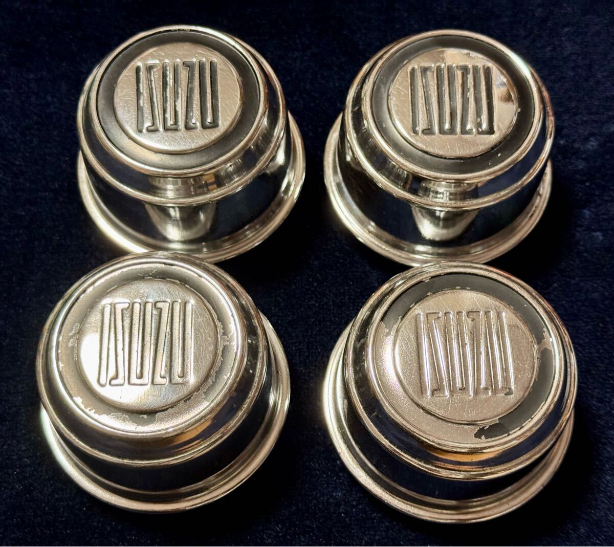 - いすゞ純正 117クーペ ベレット 13inchホイール用センターキャップ 4個〜昭和 旧車 当時もの ISUZU 117Coupe BELLETT ホイールキャップ