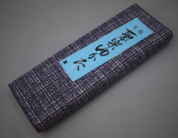 - A07-4【凛々】即決 新古品 本染 ゆかた反物 紺 格子 未仕立て品