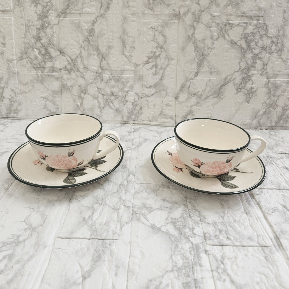 - 【未使用】 カップ&ソーサー 花柄 ペア ティーカップ 薔薇 食器 コレクション