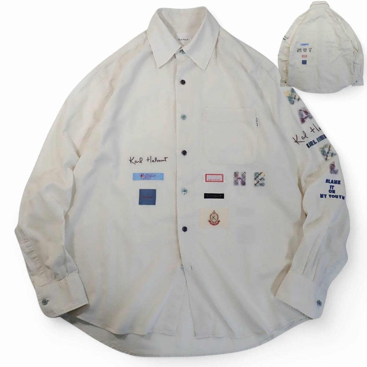 > 6414/良好 Karl Helmut ネームタグ ワッペン パッチワーク 長袖シャツ L●洗濯プレス済●ネコポス可●カールヘルム 古着