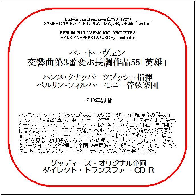 - ベートーヴェン:交響曲第3番「英雄」/クナッパーツブッシュ/送料無料/ダイレクト・トランスファー CD-R