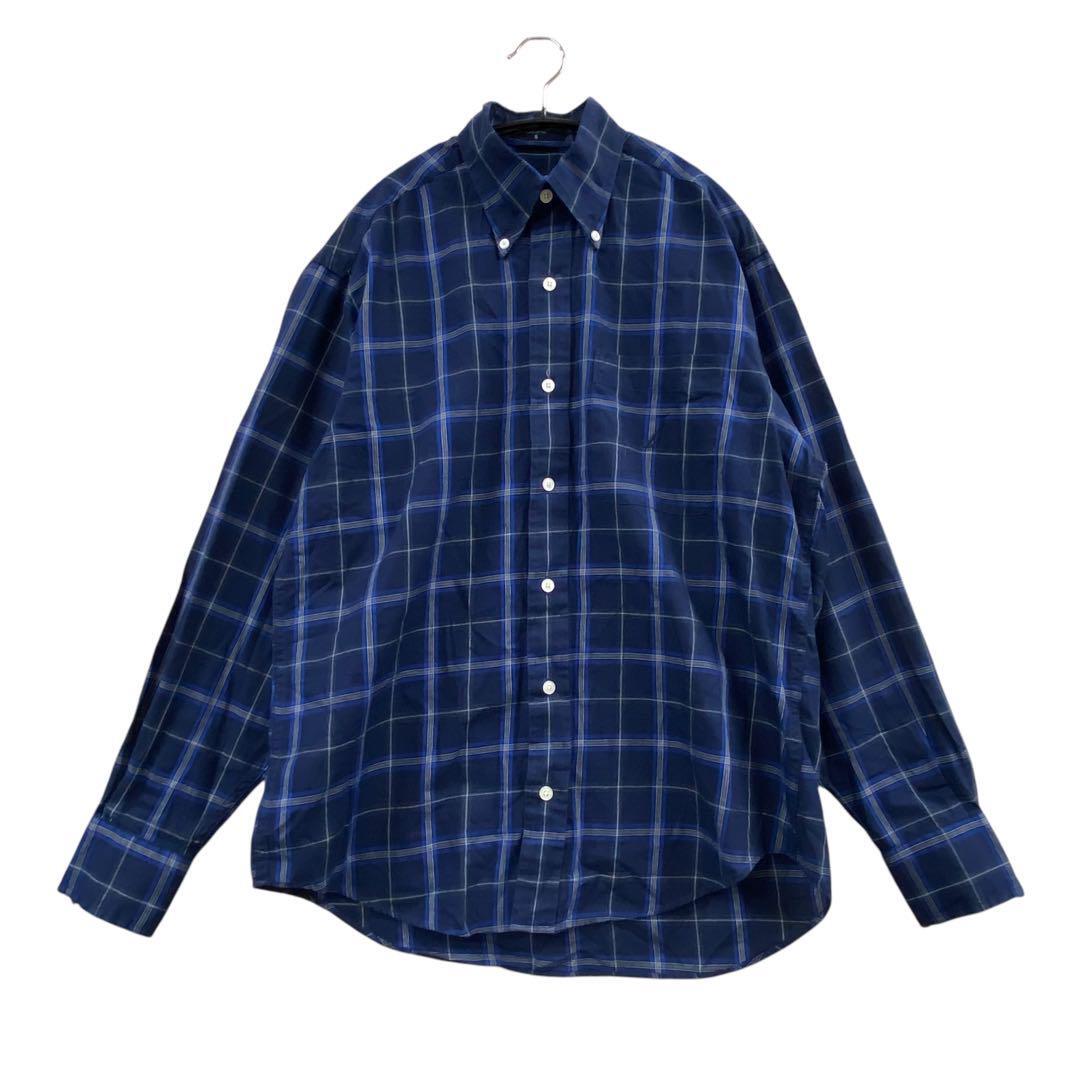 - ノーティカ メンズシャツ 紺 S コットン100% チェック 長袖【2035】