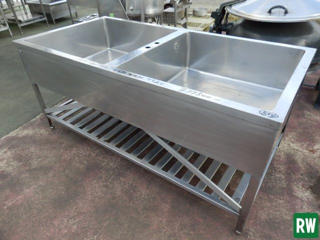 - 二槽シンク BGなし W1800×D900×H800mm ステンレス 大型 業務用 流し台 食品工場 給食センター 作業場 [2-B559]