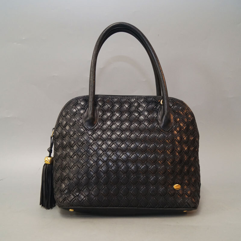 - yf65-BALLY バリー ショルダーバッグ ブラック キルティングステッチ レザー フリンジ ゴールド金具 ロゴプレート イタリア製