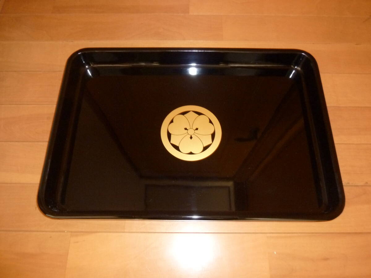 - 本金手描定紋蒔絵 大お盆 純金 木製漆器 工芸品 未使用 おまけ付き