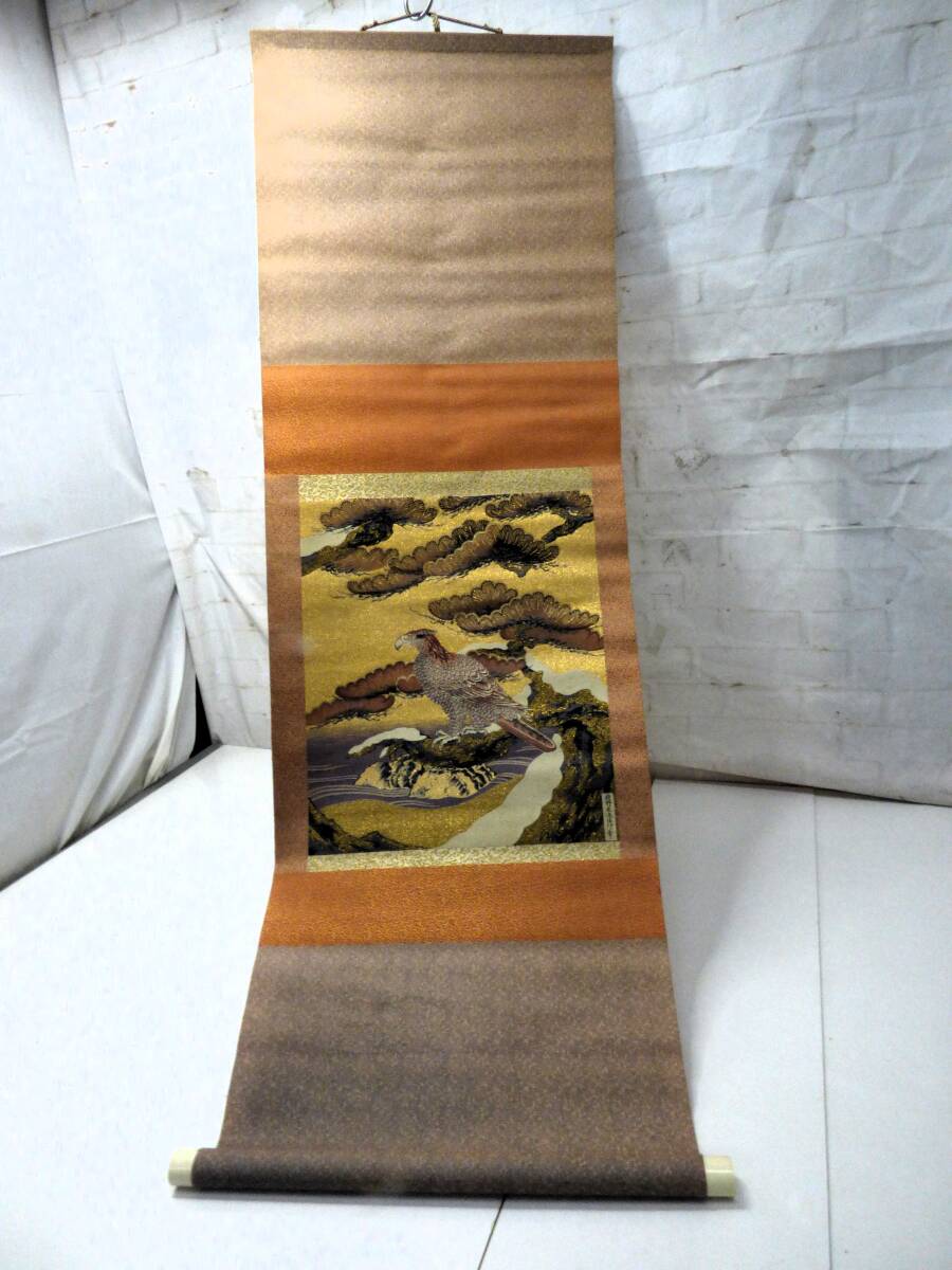- ほ849.掛け軸 狩野永徳 松鷹図 国宝 刺繍 紋織掛軸 絵 織物 掛軸 床の間飾